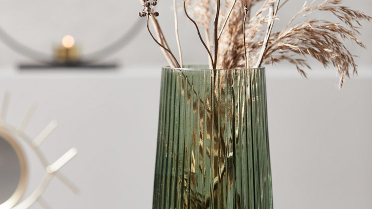 Mit ihrem besonderen Rillenmuster setzt die Vase ROY Blumen auf deinem Küchentisch gekonnt in Szene. Die Vase hat einen Durchmesser von 13 cm und eine Höhe von 20 cm und ist in den Farben grün und grau verfügbar. (4,00 €)