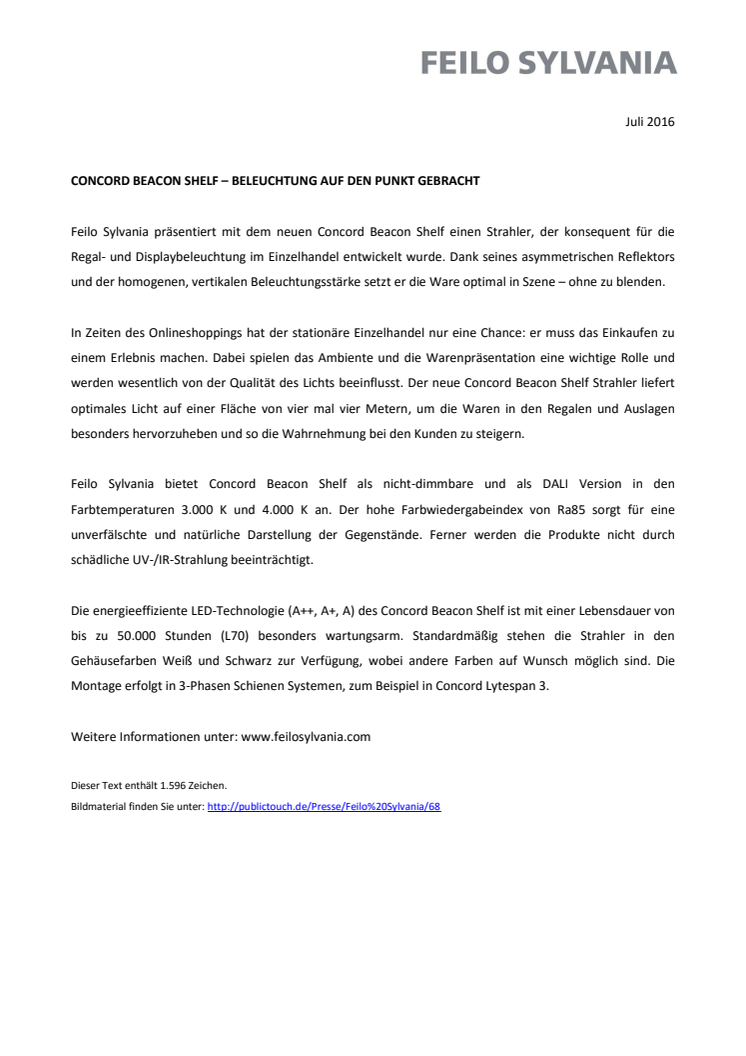 Feilo Sylvania präsentiert mit dem neuen Concord Beacon Shelf einen Strahler, der konsequent für die Regal- und Displaybeleuchtung im Einzelhandel entwickelt wurde. Dank seines asymmetrischen Reflektors und der homogenen, vertikalen Beleuchtungsstärke setzt er die Ware optimal in Szene – ohne zu blenden.