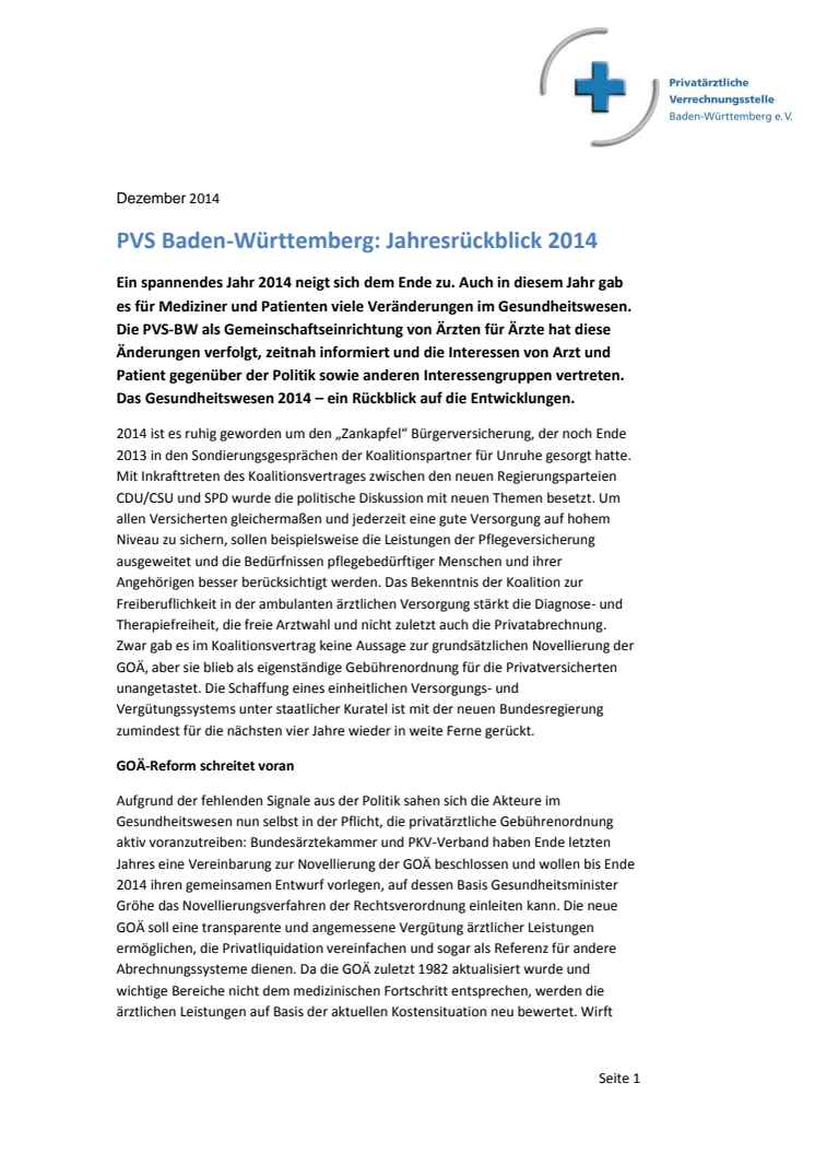 PVS Baden-Württemberg: Jahresrückblick 2014