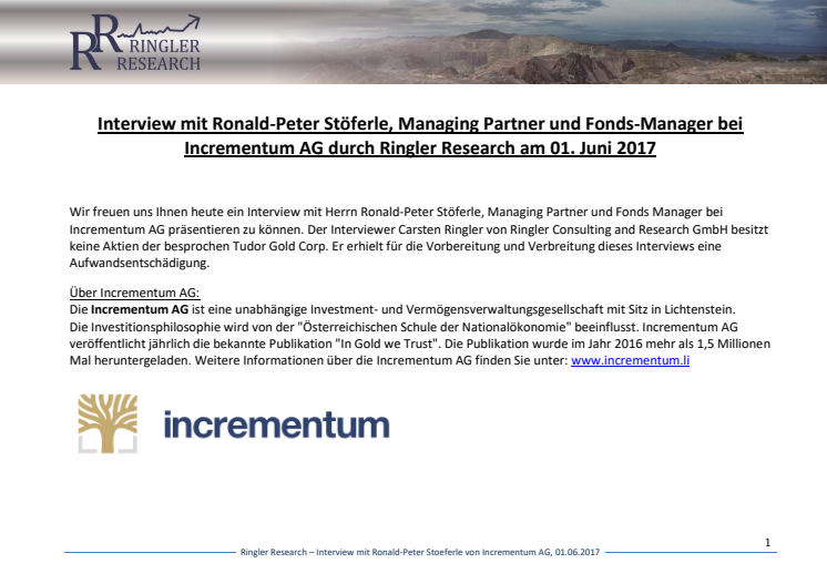 Ringler Research interviewt Ronald Stoeferle von der Incrementum AG über seine neue Publikation, ‚In Gold we Trust‘ und über seine Rolle bei Tudor Gold.