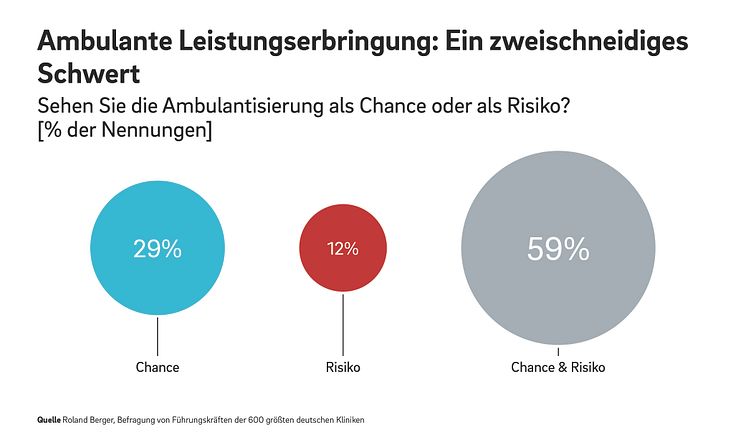 „Neue Abrechnungssysteme für die ambulante Leistungserbringung sind wichtig, aber kein Allheilmittel“, so Janes Grotelüschen, Partner bei Roland Berger. „Mit dem Wegfall stationärer Erlöse müssen die Krankenhäuser dringend ihre Infrastruktur anpassen und den Aufbau effizienter ambulanter Organisationen vorantreiben.“