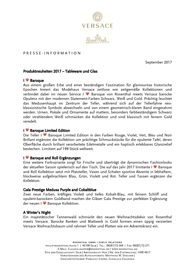 Rosenthal meets Versace - Gala Prestige Medusa Purple und Cobaltblue