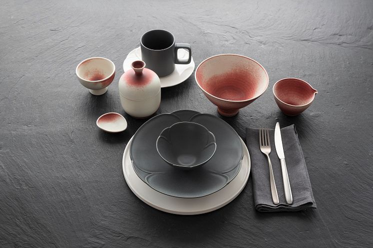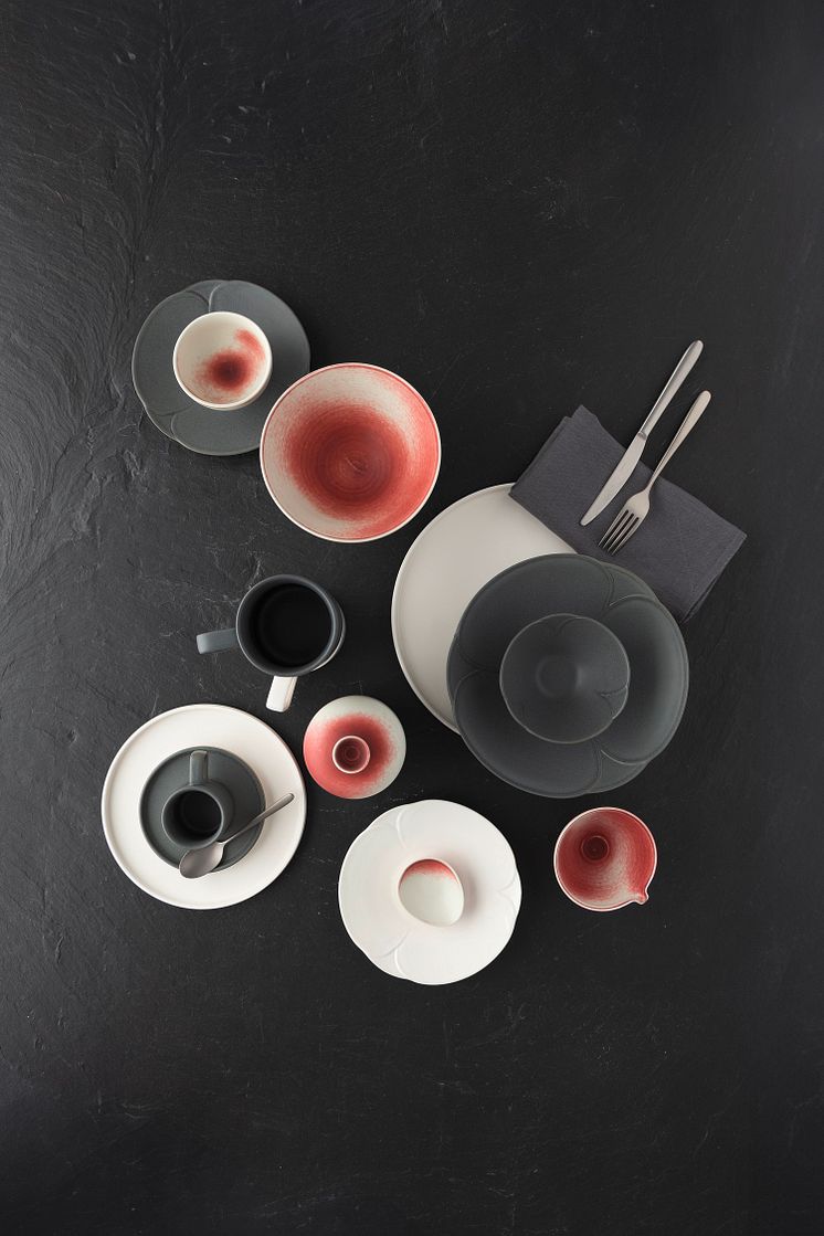 Blütenformen stehen bei dieser neuen Linie von Rosenthal im Zentrum. So erinnern Schalen und Schüsseln an geöffnete Blütenköpfe von Hibiskus, während Teller und Tassen großteils puristisch rund gehalten sind. Die asiatisch inspirierte Tableware-Kollektion aus Porzellan kommt in den Farben Lava, Scarlet und Snow. Die unregelmäßig aufgetragene, sehr matte Farbglasur gibt den Artikeln in den Farbgebungen Lava und Scarlet den Touch von handwerklich hergestelltem Steinzeug und macht jedes Produkt einzigartig. Besondere Eyecatcher sind ein Gefäß mit Deckel, Schalen mit Fuß, ein Gießer oder Schälchen in von der Natur inspirierten Formen – alle in der Farbe Scarlet. Schlichte, weiß glasierte Teller und Tassen in der Farbgebung Snow, ebenfalls zum Teil in Blütenform, ergänzen die Linie. Mit Bloom lanciert Rosenthal eine aufregende Kollektion, die ungewöhnliche Formen und Farbe sowie einen Hauch Asien auf den Tisch bringt und Gäste zuhause oder im Restaurant überrascht.
