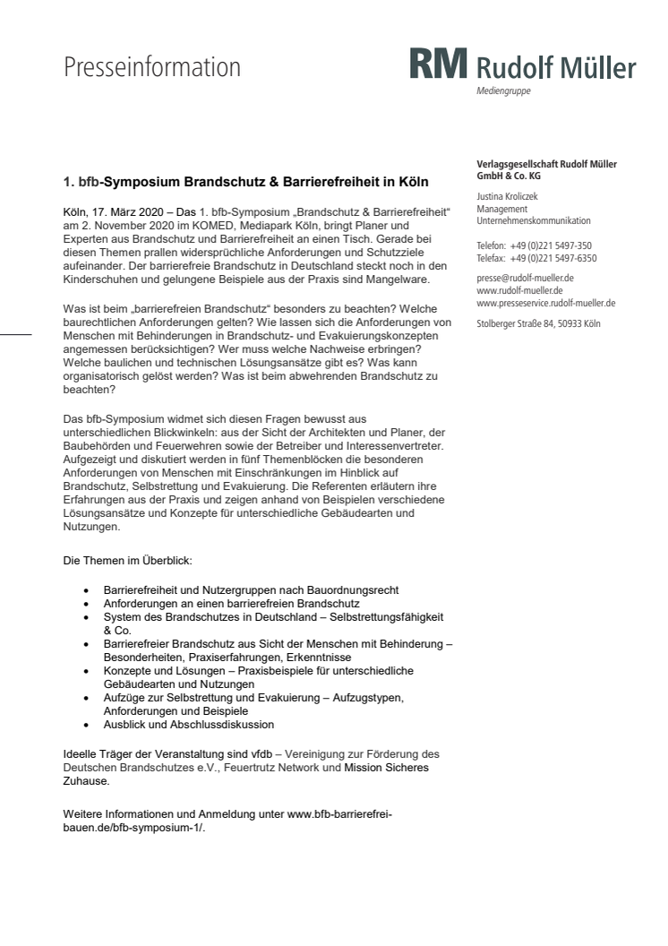 1. bfb-Symposium Brandschutz & Barrierefreiheit in Köln