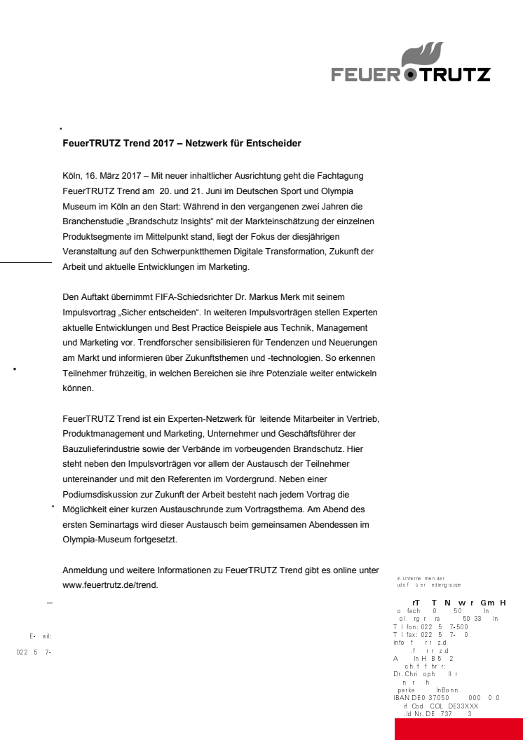FeuerTRUTZ Trend 2017 – Netzwerk für Entscheider