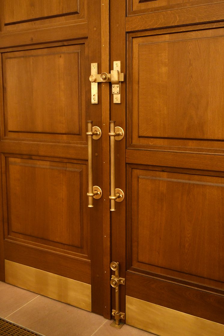 Kategorie Metallgestaltung: Die Türbeschläge des Eingangsportals sind so gestaltet, dass sie sich harmonisch ins Gesamtbild einfügen.