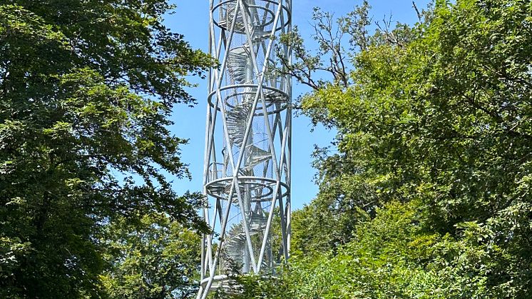 • Der neue Atzelbergturm besteht aus 30 Tonnen Stahl, ist 27,5 Meter hoch, und wer die 156 Stufen erklommen hat, betritt die oberste Plattform mit ihren knapp fünf Metern Durchmesser.
