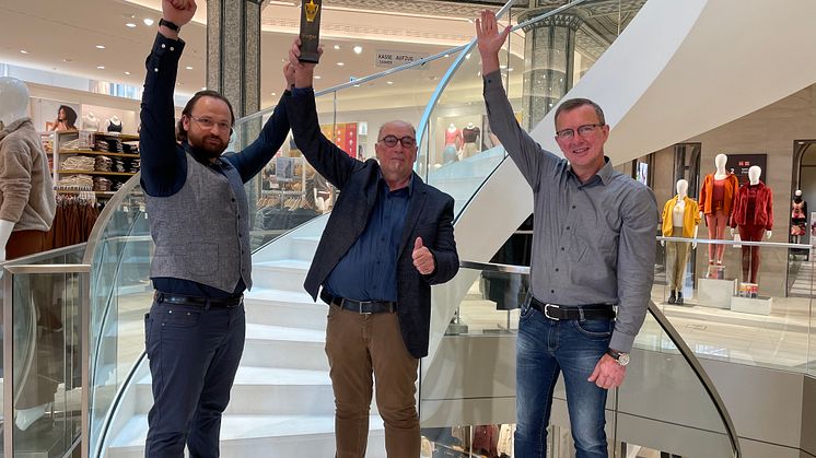 • Artur Schiller, Jürgen Krack und Peter Wedel (von links) freuen sich über den Deutschen Metallbaupreis, den das Unternehmen bereits zum zweiten Mal für sich entscheiden konnte