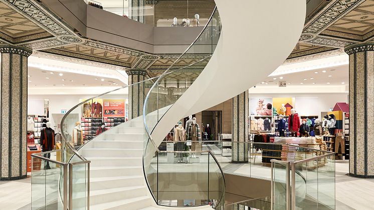 • : Die freistehende Treppe steht in einem denkmalgeschützten Gebäude und führt die Besucher durch die Hamburger Filiale der Modekette Uniqlo