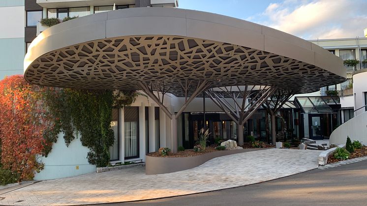 • Bernhard Hahner holt den Deutschen Metallbaupreis für sein Hotel-Vordach im Baumform in Bad Bocklet