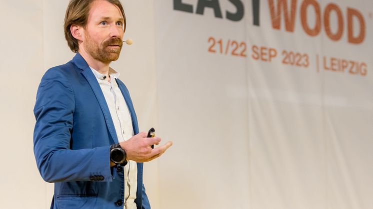 • Den Veranstaltern war es wieder gelungen, hochkarätige Referenten der Holzbaubranche für die EASTWOOD zu gewinnen, hier Falk Berling-Hoffmann von Krontal Marx Partner aus Hannover.
