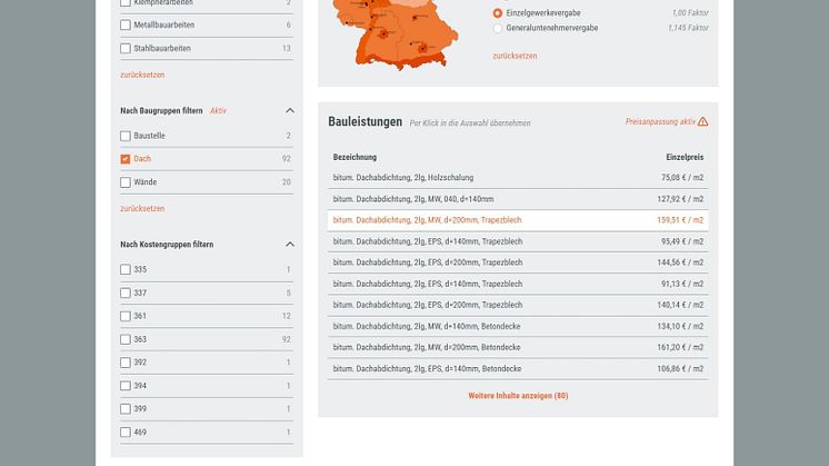 • Die Datenbank enthält Orientierungspreise auf Basis von mehr als 2.800 ausgewerteten Angeboten.
