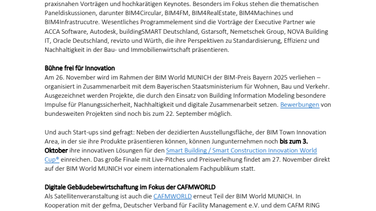 Die Rudolf Müller Mediengruppe ist einer der führenden Fachinformations- und Lösungsanbieter für die Baubranche. Als Spezialist für Trends und Themen rund um das Planen, Bauen, die Immobilienwirtschaft und den Handel unterstützt das Unternehmen Kunden im deutschsprachigen B2B-Bereich mit individuellen, multimedialen Lösungen, die Prozesse unterstützen und das jeweilige Informationsbedürfnis erfüllen. Die Mediengruppe umfasst aktuell eine Holding, den Fachverlag RM Rudolf Müller Medien und mit der BIM World MUNICH eine Netzwerkplattform für Akteure der Digitalisierung im Bau-, Immobilien- und Infrastrukturbereich.