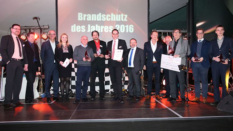 Köln, 18. Februar 2016 – Zum sechsten Mal hat FeuerTRUTZ Network am 17. Februar 2016 den „Brandschutz des Jahres“ verliehen. Mit dieser Auszeichnung prämiert das Medienhaus Brandschutzkonzepte, Produkte im baulichen, anlagentechnischen und organisatorischen Brandschutz sowie Master- und Bachelorarbeiten zum Thema Vorbeugender Brandschutz. Der Preis wurde im Rahmen der Abendveranstaltung der FeuerTRUTZ Fachmesse 2016 an die Gewinner der verschiedenen Kategorien überreicht.