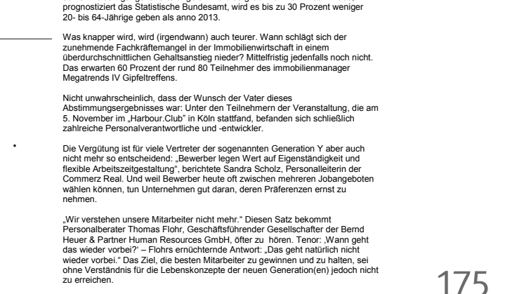 immobilienmanager Megatrends IV Gipfeltreffen: Gehälter wachsen trotz Fachkräftemangels mittelfristig nicht überdurchschnittlich stark.