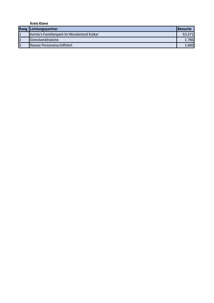 Ranking der RUHR.TOPCARD-Partner 2024 für den Kreis Kleve