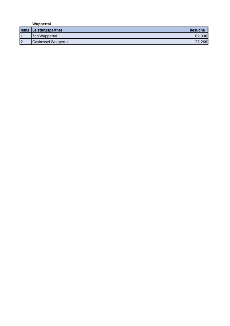 Ranking der RUHR.TOPCARD-Partner 2024 für Wuppertal