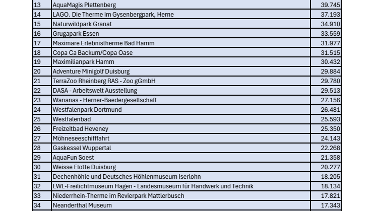 • Ranking RUHR.TOPCARD 2024 Oberhausen