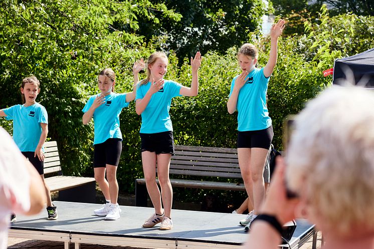 Zusammen tanzen macht Spaß und schafft soziale Bindungen, was gerade in schwierigen Zeiten wichtig ist. Jeder kann tanzen. Manche bewegen sich schneller zum Rhythmus der Musik, andere langsamer. Egal wie, beim Musik- und Tanzfest war alles erlaubt. Natürlich durfte auch mitgesungen werden – Hauptsache, es macht Spaß! Für den richtigen Drive sorgten die beiden Sängerinnen Jasmin und Clara mit international bekannten Songs wie „Happy“ von Pharrell Williams bis zu „99 Luftballons“ von Nena.