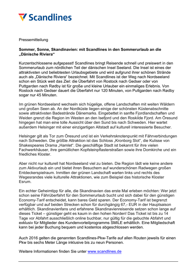 Sommer, Sonne, Skandinavien: mit Scandlines in den Sommerurlaub an die "Dänische Riviera"