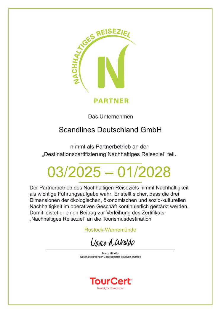 Scandlines wird TourCert Qualified Partner: Engagement für nachhaltigen Tourismus in Rostock
