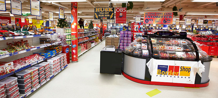 Süßigkeitenabteilung im BorderShop Puttgarden