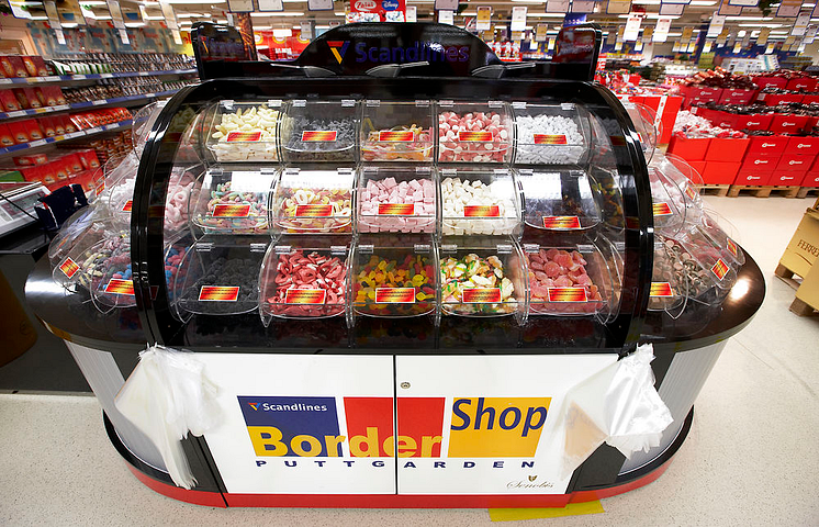 Süßigkeitenabteilung im BorderShop Puttgarden