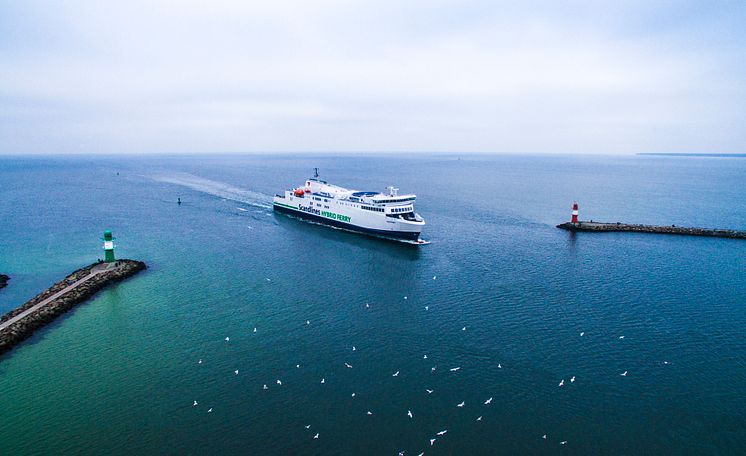 Scandlines' Hybridfähre „Copenhagen" auf der Strecke Rostock-Gedser