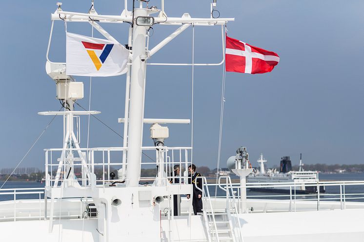 Etwa 150 Sondergäste waren zu diesem feierlichen Anlass an Bord der neuen Hybridfähre geladen, die momentan in ihrem neuen Fährbett in Rostock liegt. Während der Festlichkeiten bot sich den Gästen eine fantastische Aussicht auf die Einfahrt der Fähren in Warnemünde.