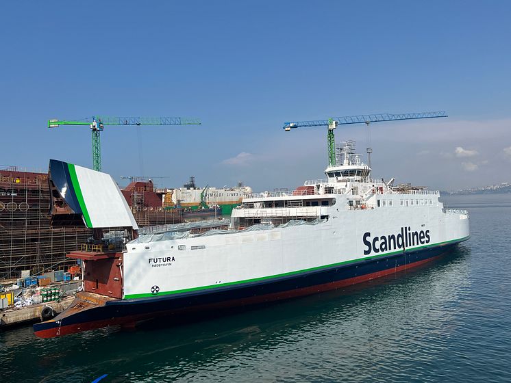 Scandlines zero direct emissions freight ferry Futura at the outfitting quay at the Cemre yard