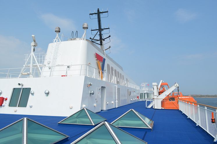 Sonnendeck auf Scandlines' neuer Hybridfähre "Berlin"