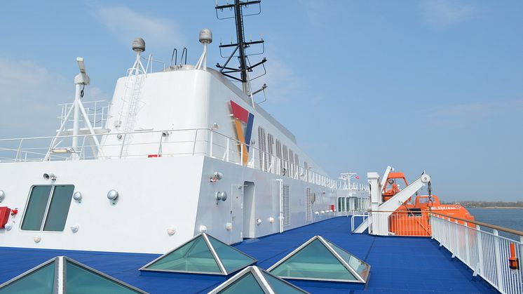 Sonnendeck auf Scandlines' neuer Hybridfähre "Berlin"