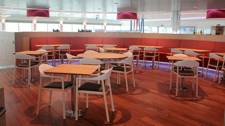 Das Restaurant an Bord von Scandlines' neuer Hybridfähre "Berlin"
