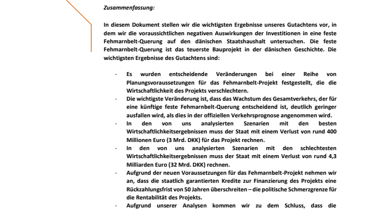 • Wirtschaftliche Folgen einer festen Fehmarnbelt-Querung – eine Analyse neuer Voraussetzungen