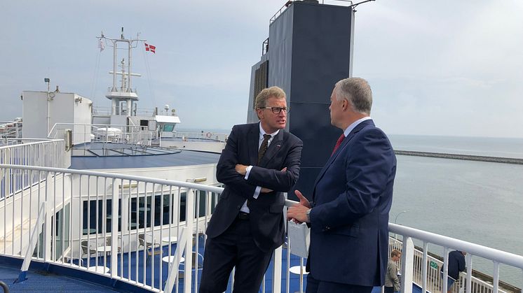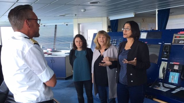 Zu einem Informationsbesuch konnte Heiko Kähler, Geschäftsführer der Scandlines Deutschland GmbH, heute (28.06.2019) drei SPD-Politikerinnen an Bord des Fährschiffs „Deutschland“ begrüßen. Zwei davon in neuen Funktionen.