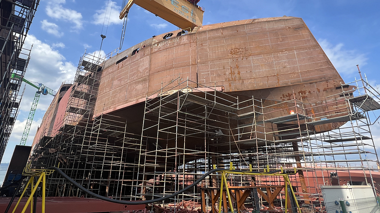 Die Bauarbeiten der neuen, Zero Direct Emission Frachtfähre von Scandlines, die den Arbeitstitel „PR24“ trägt, schreiten planmäßig voran. Im vierten Quartal wird die Fähre zum ersten Mal mit dem Element Wasser in Berührung kommen, wenn der Schiffskörper von der Helling ins Wasser gelassen wird. Anschließend wird das Schiff am Ausrüstungskai festgemacht, an dem die restlichen Arbeiten durchgeführt werden.