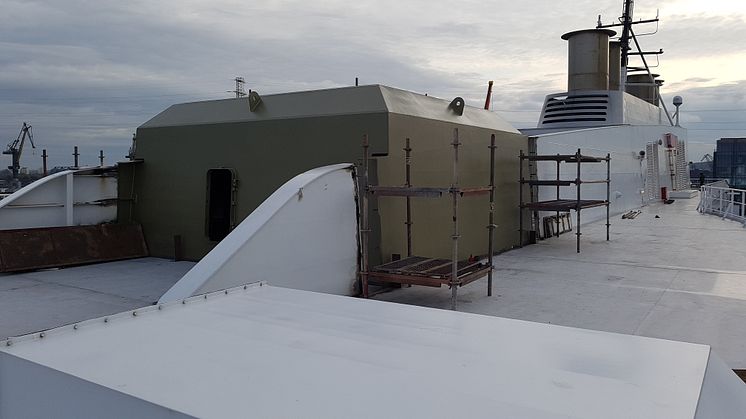 Die vorbereitenden Arbeiten für die Installation des Rotorsegels auf der Hybridfähre „Copenhagen“ konnten während des geplanten Werftaufenthaltes im Herbst 2019 erfolgreich abgeschlossen werden.