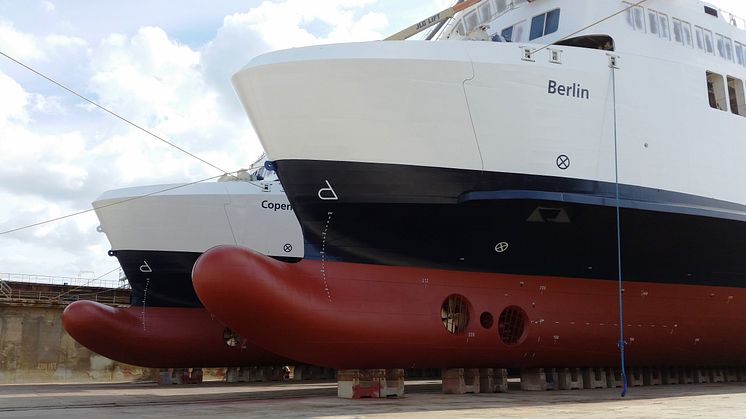 Die beiden neuen Fähren „Berlin“ und „Copenhagen“ liegen nun wieder am Kai der dänischen Werft FAYARD auf Fünen. Vorangegangen war eine ereignisreiche Zeit, in der beide Schiffe eine Verwandlung durchlaufen haben, um schließlich zwei moderne Passagierfähren zu werden.