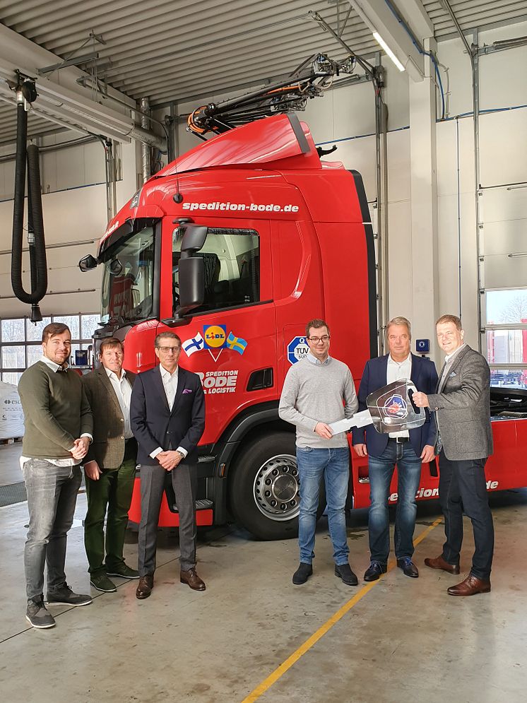Auslieferung des ersten Oberleitungs-Lkw an die Spedition Bode
