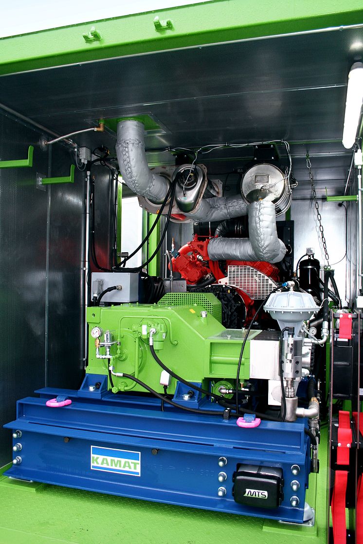 Das KAMAT-Hochdrucksystem kombiniert die Pumpe (vorne) mit ZF-Getriebe und dem Scania V8.