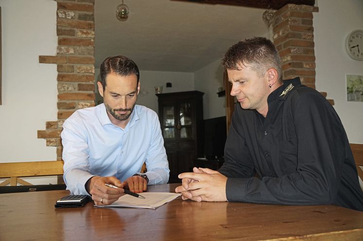 Bei Anton Freudensprung (li.) von Scania Leasing fühlt sich Kurt Binder gut aufgehoben. „Man merkt einfach, dass die Scania Experten meine Branche kennen“, sagt er.