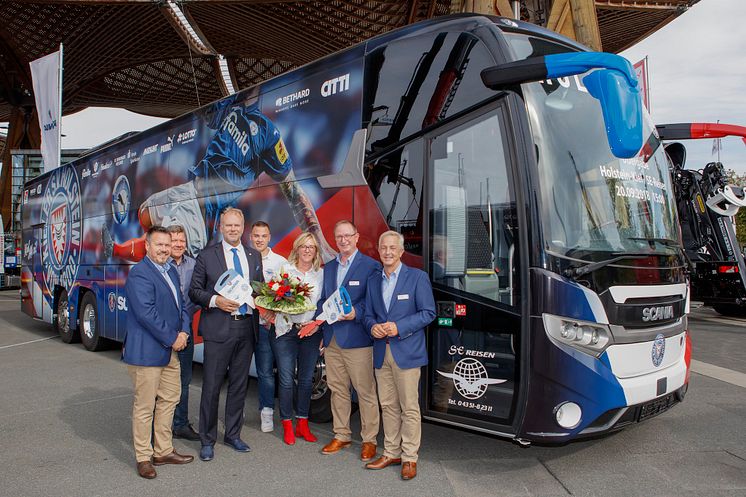 Fahrzeugübergabe anlässlich der IAA Nutzfahrzeuge 2018: Scania Interlink HD für SE Reisen und KSV Holstein
