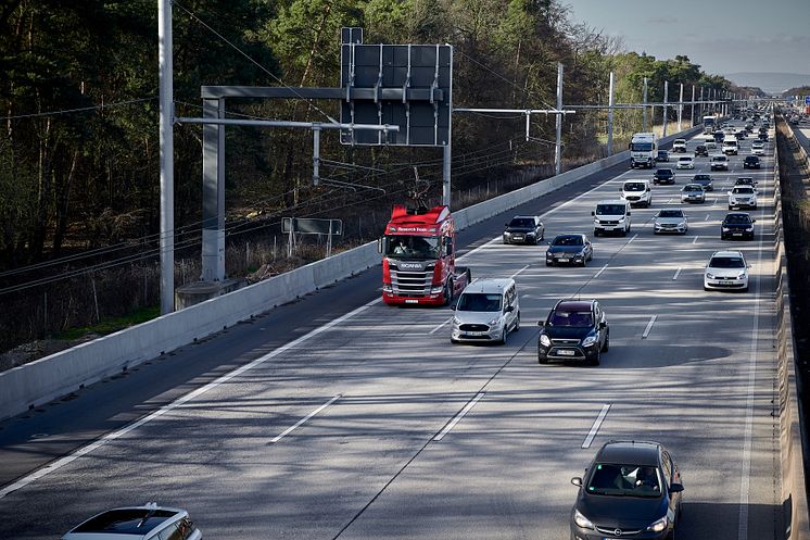 Scania Oberleitungs-Lkw auf der hessischen E-Highway Teststrecke