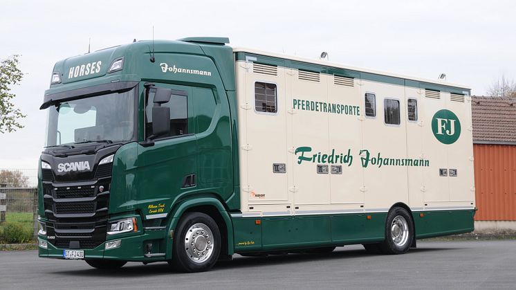 Der Scania R 450 Highline ist das umweltfreundlichste Nutzfahrzeug seiner Klasse. Jetzt gibt es den Sieger des Umweltrankings 2017 auch als First Class Pferdetransporter im Dienst der renommierten Sportpferde-Spedition Johannsmann.