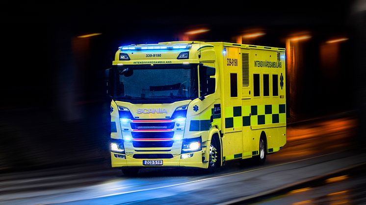 Das Stockholmer Gesundheitswesen investiert in einen Scania R 410 Krankenwagen, um auch für Patienten mit schwerwiegenden Erkrankungen den notwendigen Transport sicherstellen zu können.