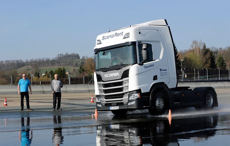 Übung macht den Meister: Das Scania Fahrsicherheitstraining auf dem Sachsenring hilft Fahrern, künftig sicherer und entspannter mit dem Lkw unterwegs zu sein.