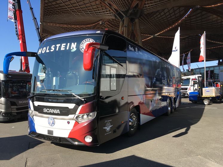 Der Scania Interlink HD ist der neue Mannschaftsbus des Fußballvereins KSV Holstein.