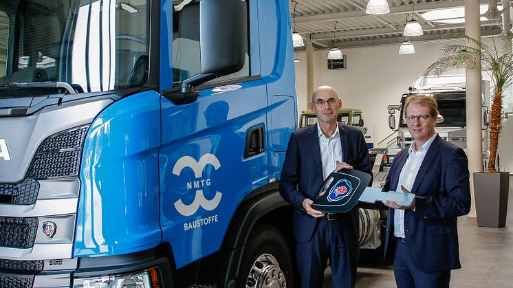 Ein Scania G 410 LNG ergänzt seit kurzem den Fuhrpark der Huettemann Gruppe. Die Sattelzugmaschine mit Gasantrieb ist für das Tochterunternehmen Niederrheinische Mineraltransportgesellschaft (NMTG) unterwegs, das als erstes Unternehmen der Huettemann Group Flüssiggas (LNG) als Antriebskonzept testet.
