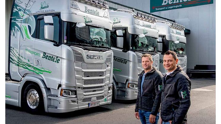 - die Gutmann GmbH aus Innsbruck, die ihrem Newcomer im Fuhrpark, einem Scania R 500 6x2*4, für den Transport von AdBlue ein neues blaues Outfit spendierte.