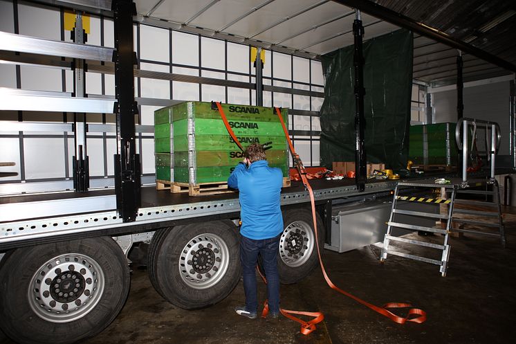 Für einige stellte sich die Station „Ladungssicherung“ am kniffligsten dar, so auch für Gewinner Stefan Spengler. Zahlreiche Unfälle geschehen heutzutage aufgrund fehlender oder mangelhafter Ladungssicherung. Aus diesem Grund ist die Firma Zurrpack seit fast einem Jahrzehnt Partner des Scania Fahrerwettbewerbs. Hans-Günter Gaule, Geschäftsführer der Firma Zurrpack, reiste selber nach Pferdsfeld, um die Station „Ladungssicherung“ zu betreuen. „Die Finalisten des Scania Fahrerwettbewerbs mussten am ersten Tag eine frei stehende 3 Tonnen schwere Ladung korrekt sichern. Hierbei wurde genau darauf geachtet, ob die Fahrer alle Parameter berücksichtigen, wie z. B. Ladungsgewicht, Einsatz von Antirutschmatten, Zurrwinkel, Kantenschoner oder Vorspannkraft des Zurrsystems. Außerdem stellte sich den Teilnehmern die Frage, ob es weitere Möglichkeiten neben dem Niederzurren gibt. Dafür wurden als praktische und zeitsparende Alternative zwei Kopflasching-Netze zur Verfügung gestellt. Mit der beiliegenden Tabelle konnte erkannt werden, dass mit nur zwei Kopflasching-Netzen Ladungsgewichte über 15 Tonnen gesichert werden konnten. Viele Teilnehmer erkannten diese Möglichkeit und sicherten in kürzester Anlegezeit die Ladung“, erklärt Gaule.
